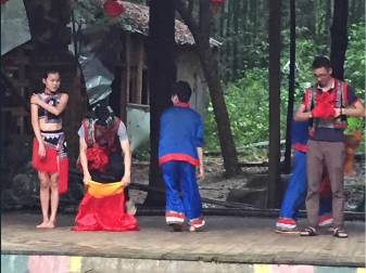 要說瑤族風(fēng)情園中發(fā)生的趣事,當(dāng)中最引人發(fā)笑的要數(shù)John和Semi與瑤族小妹們的婚禮表演了。年輕的John表現(xiàn)出的急迫與張揚(yáng)和老成的Semi的羞澀與含蓄對比相當(dāng)強(qiáng)烈。中途John的褲子多次滑落,讓人們看得更加有趣。估計(jì)熱情好客的瑤家主人也會(huì)深深的記住理想物流這家【中港貨運(yùn)公司】的銷售小伙子們的陽光和搞怪。