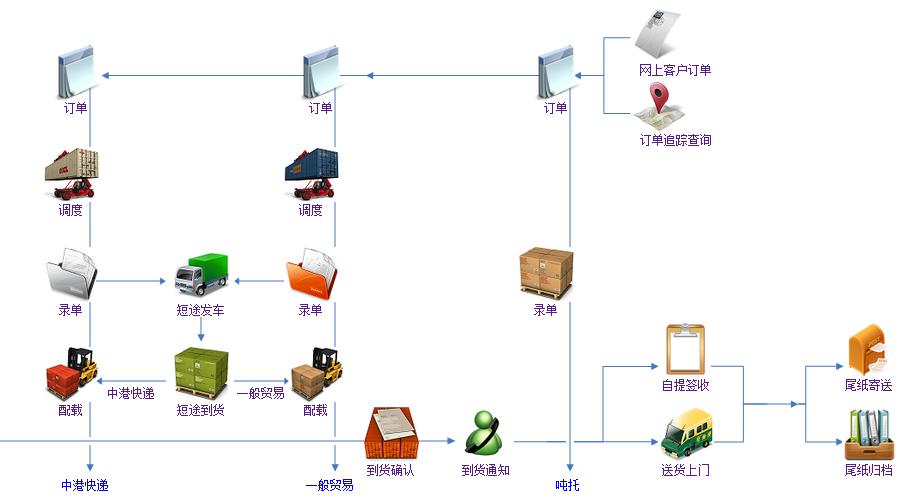 2、中港運輸。主要是指大陸貨倉到香港貨倉的貨物動態(tài),一般貿(mào)易報關、快件報關以及過口岸通關順利到達中港物流香港倉。 3、3、香港派送。貨物到了香港倉再由本地車送貨上門或交貨到指定地點,當中包括客戶上門取貨和我們派送交倉兩種方式。派送這個環(huán)節(jié)一般操作同事都會在業(yè)務下單前根據(jù)派送地址和空海運倉私倉以及辦公室提前預排好派送。讓客戶的貨在順利通過后第一時間派送到指定地點。 4、4、派送簽收尾紙雜費票據(jù)整理(這一項主要針對派送加倉。)對報關單掃描件整理(針對中港一把貿(mào)易出口)